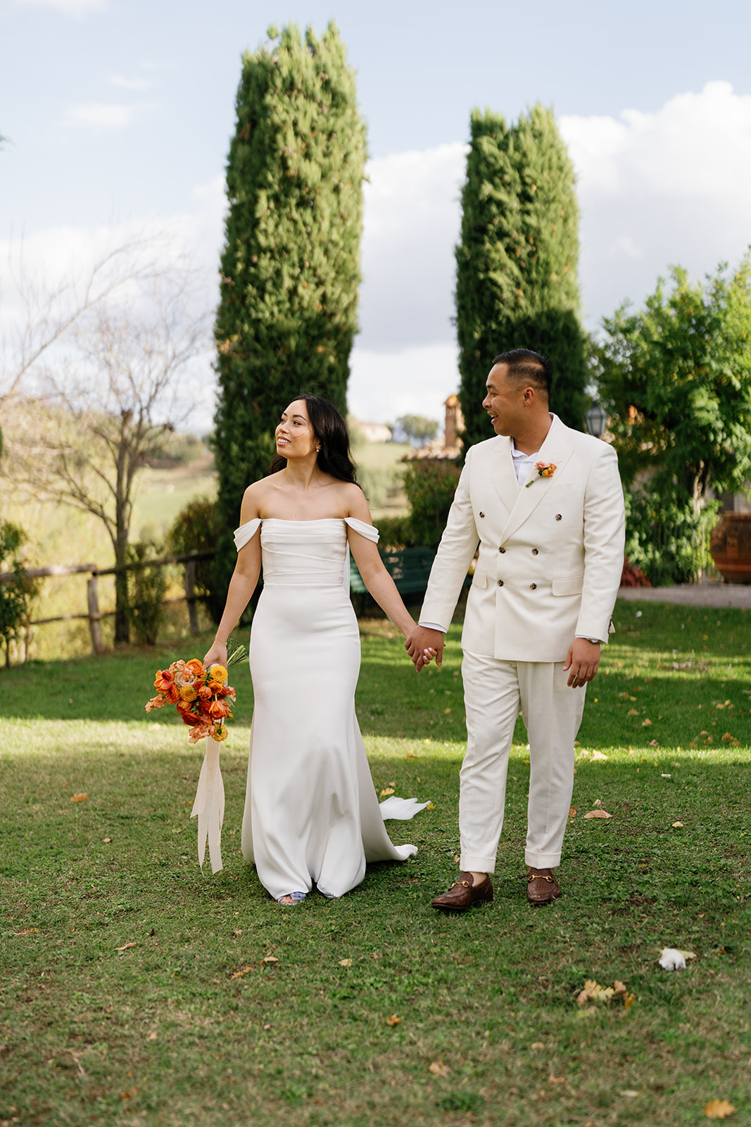 Allison and Brian are from Oakland in the U.S. . They live in London, and as they ADORE pasta, wine and all good things in life, they decided to invite their family and friends to enjoy the finest things Tuscany has to offer and witness their marriage celebration. What a feast for the soul, and the belly that awesome event was.