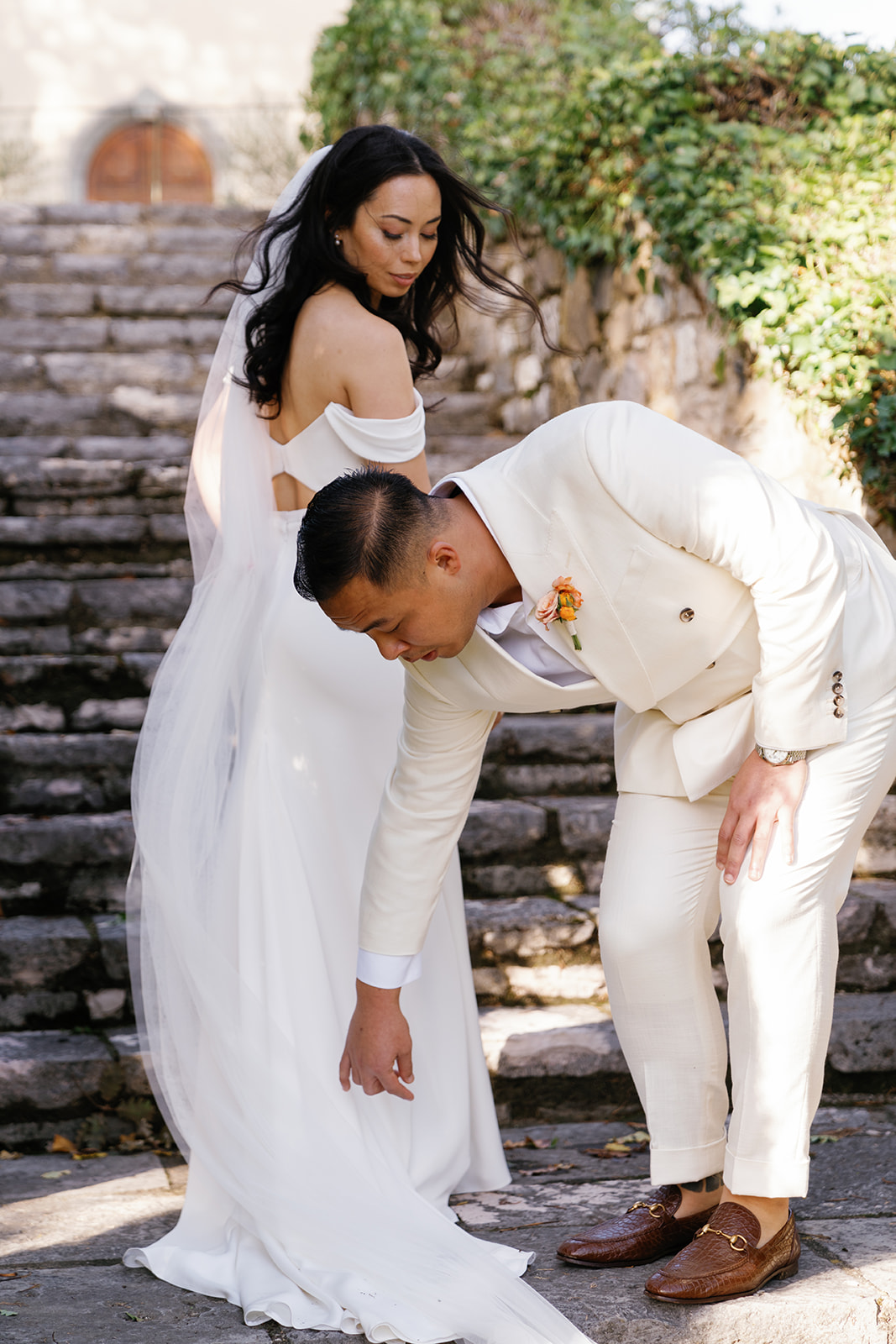 Outfits – @AleenaLeenaBridal (Wedding Dress); @VaniaRomoff (Goodbye Brunch); Brian – @editsuits (Suit) @gucci (Shoes)